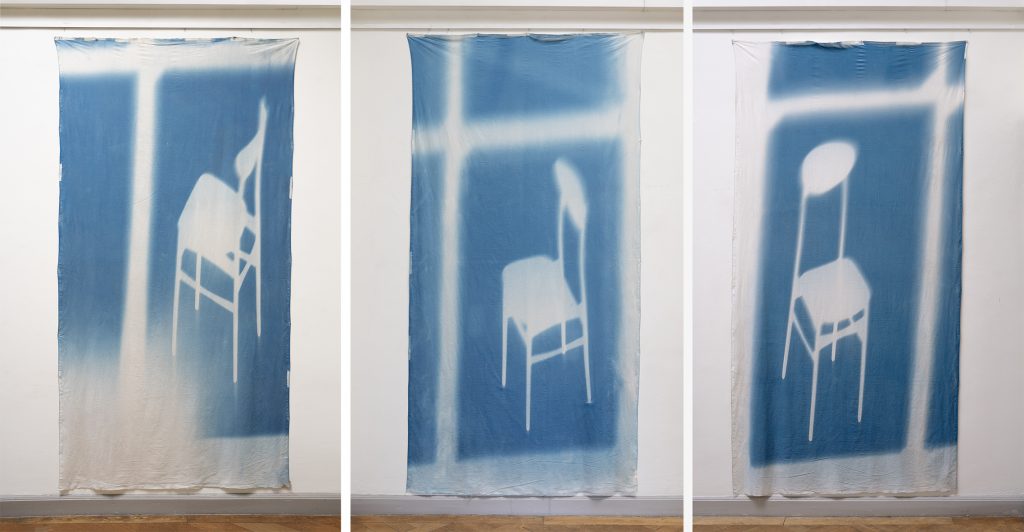 Cyanotypes on cotton, 150 × 300 cm each
